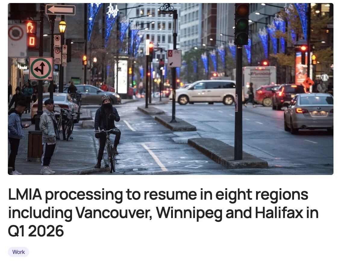 自 1月9日 起,联邦政府将在 8 个失业率降至 6% 以下的地区,正式恢复低工资劳动力市场影响评估(LMIA)的审批工作。