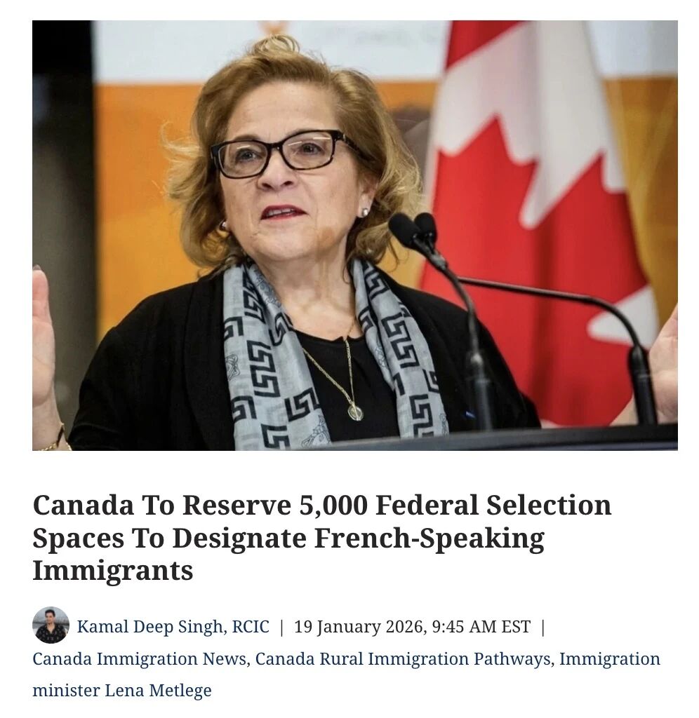 从2026年开始,加拿大将预留 5,000 个“联邦甄选名额”,专门用于安置法语移民,由各省和地区进行指定。