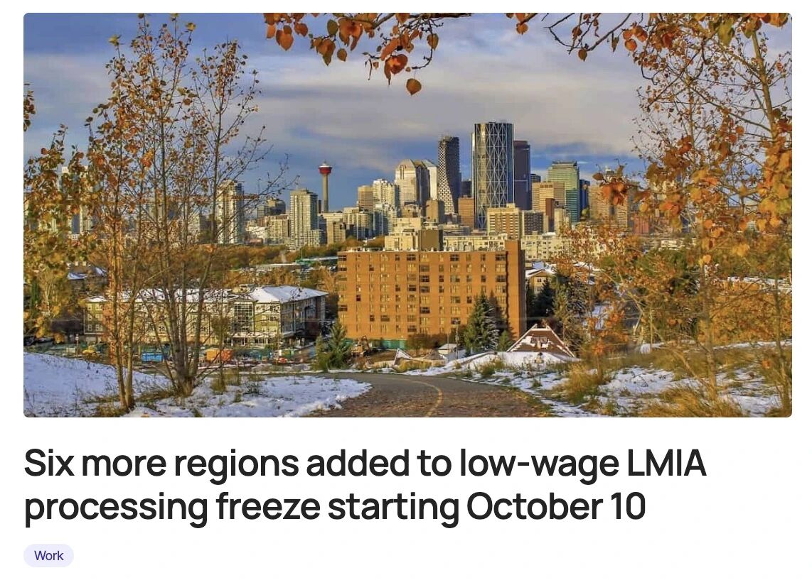 重大更新!自2025年10月10日起,加拿大再有6个地区被列入“低薪LMIA冻结名单”!