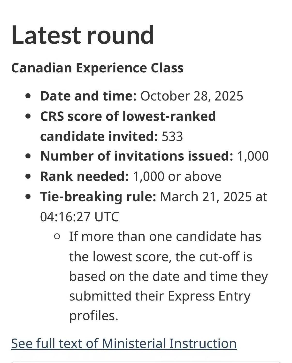 这也是自2025年8月以来,连续第四次CEC专项抽签维持1000个邀请名额。分数线几乎原地踏步,从上次的534微降1分至533。